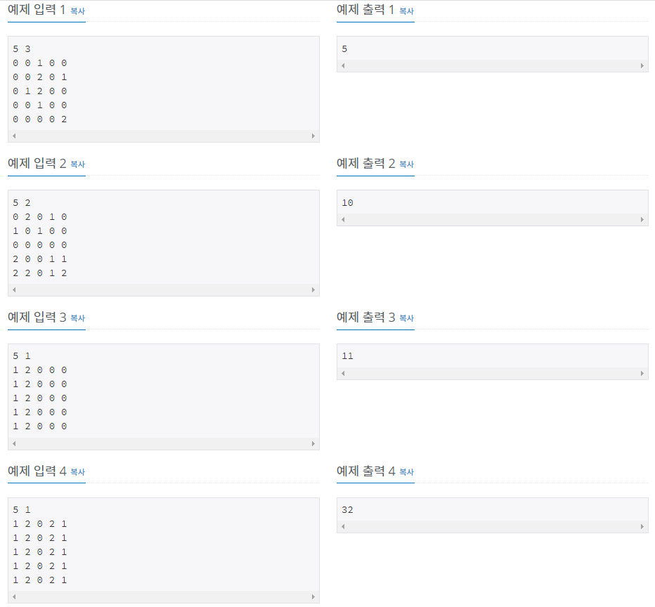첫째 줄에 N(2 ≤ N ≤ 50)과 M(1 ≤ M ≤ 13)이 주어진다.