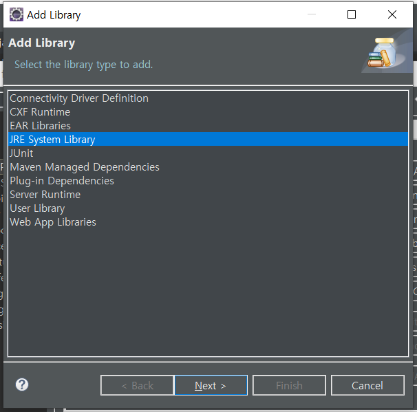 3. JRE System Library 선택 후 Next