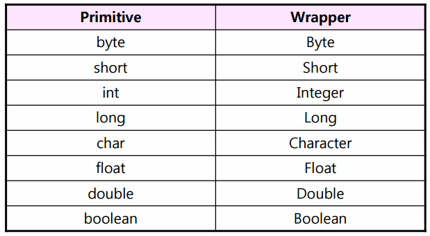 *래퍼 클래스: 기본 자료형의 데이터를 인스턴스(객체)로 만들기 위해 사용하는 클래스