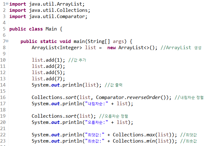 정렬과 최대값, 최소값을 구하기 위해서는 java.util.Collections와 java.util.Comparator을 import 해야 한다.