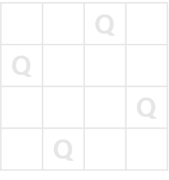 가로, 세로 길이가 n인 정사각형으로된 체스판이 있습니다. 체스판 위의 n개의 퀸이 서로를 공격할 수 없도록 배치하고 싶습니다. 예를 들어서 n이 4인경우 다음과 같이 퀸을 배치하면 n개의 퀸은